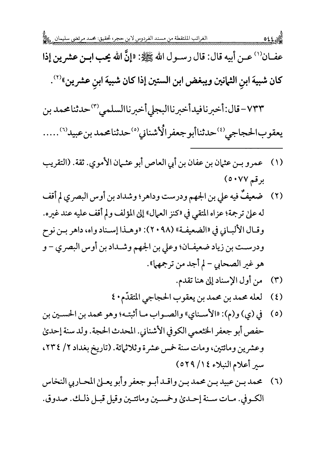 ٧٣٣ - قال: أخبرنا فيد أخبرنا البجلي أخبرنا السلمي (¬٣) حدثنا محمد بن يعقوب الحجاجي (¬٤) حدثنا أبو جعفر الأشناني (¬٥) حدثنا محمد بن عبيد (¬٦)