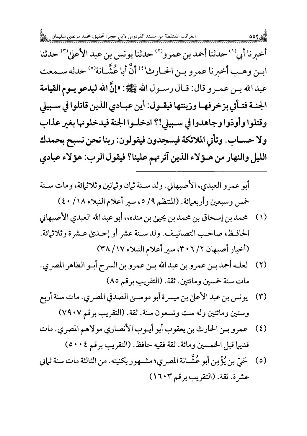 (¬٥) حَيّ بن يُؤْمِن أبو عُشَّانة المصري؛ مشهور بكنيته. من الثالثة مات سنة ثماني عشرة. ثقة. (التقريب برقم ١٦٠٣)