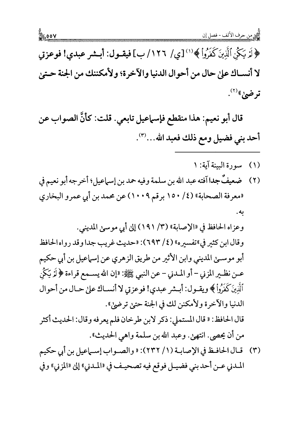 قال أبو نعيم: هذا منقطع فإسماعيل تابعي. قلت: كأنَّ الصواب عن أحد بني فضيل ومع ذلك فعبد الله ..... (¬٣).