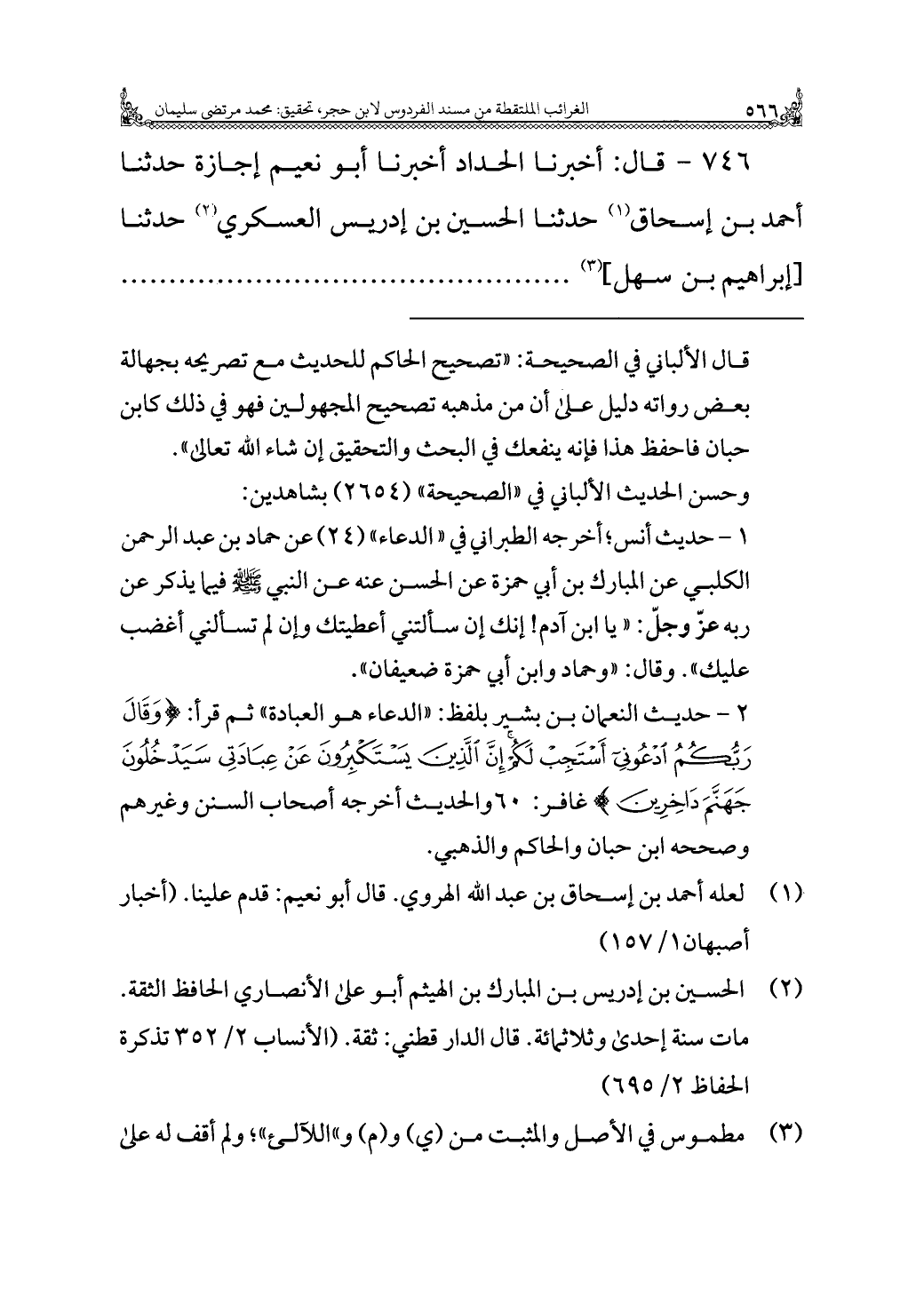 ٧٤٦ - قال: أخبرنا الحداد أخبرنا أبو نعيم إجازة حدثنا أحمد بن إسحاق (¬١) حدثنا الحسين بن إدريس العسكري (¬٢) حدثنا [إبراهيم بن سهل] (¬٣)