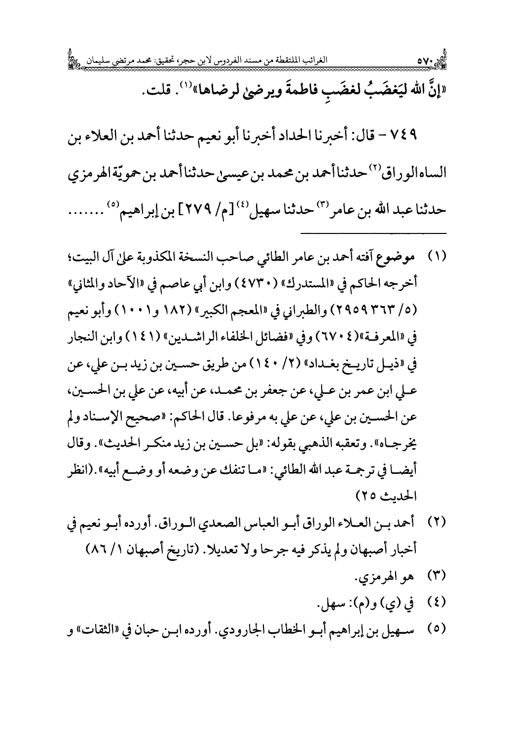 ٧٤٩ - قال: أخبرنا الحداد أخبرنا أبو نعيم حدثنا أحمد بن العلاء بن الساه الوراق (¬٢) حدثنا أحمد بن محمد بن عيسى حدثنا أحمد بن حمويّة الهرمزي حدثنا عبد الله بن عامر (¬٣) حدثنا سهيل (¬٤) بن إبراهيم (¬٥)