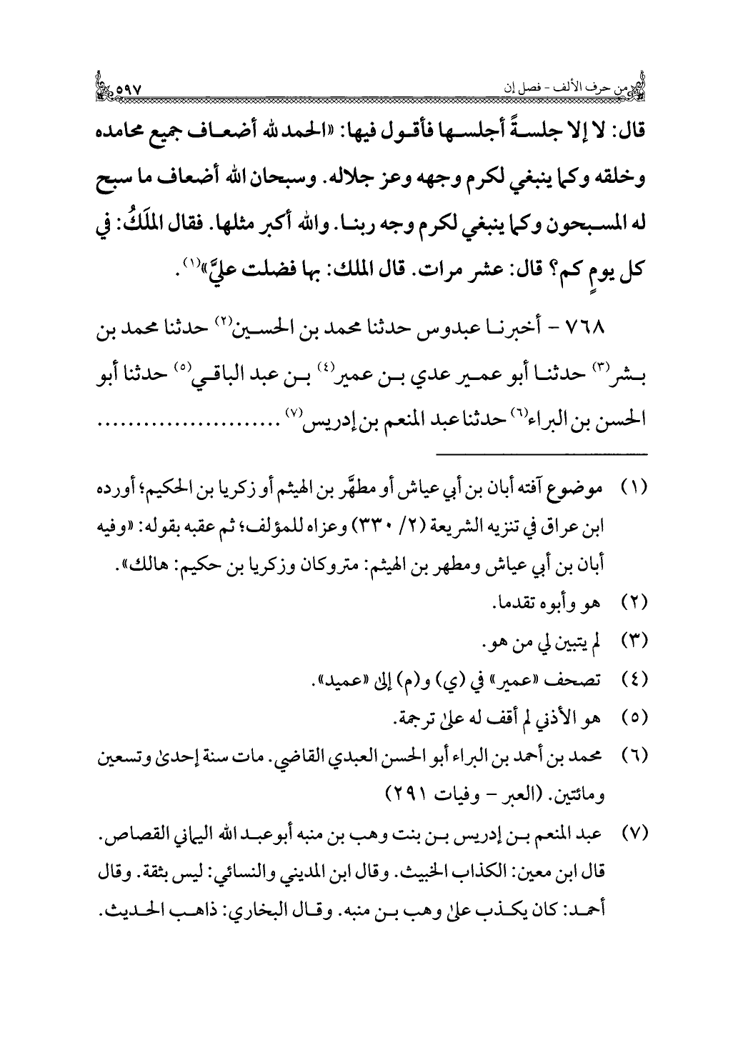 ٧٦٨ - أخبرنا عبدوس حدثنا محمد بن الحسين (¬٢) حدثنا محمد بن بشر (¬٣) حدثنا أبو عمير عدي بن عمير (¬٤) بن عبد الباقي (¬٥) حدثنا أبو الحسن بن البراء (¬٦) حدثنا عبد المنعم بن إدريس (¬٧)