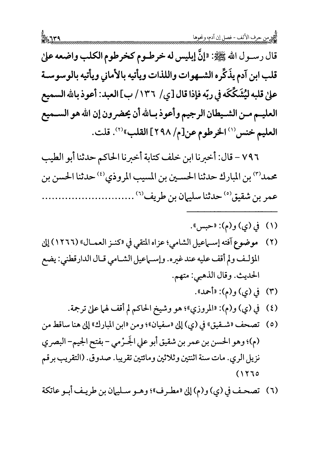 (¬٥) تصحف "شقيق" في (ي) إلى "سفيان"؛ ومن "ابن المبارك" إلى هنا ساقط من (م)؛ وهو الحسن بن عمر بن شقيق أبو علي الجَرْمي - بفتح الجيم - البصري نزيل الري. مات سنة اثنتين وثلاثين ومائتين تقريبا. صدوق. (التقريب برقم ١٢٦٥)