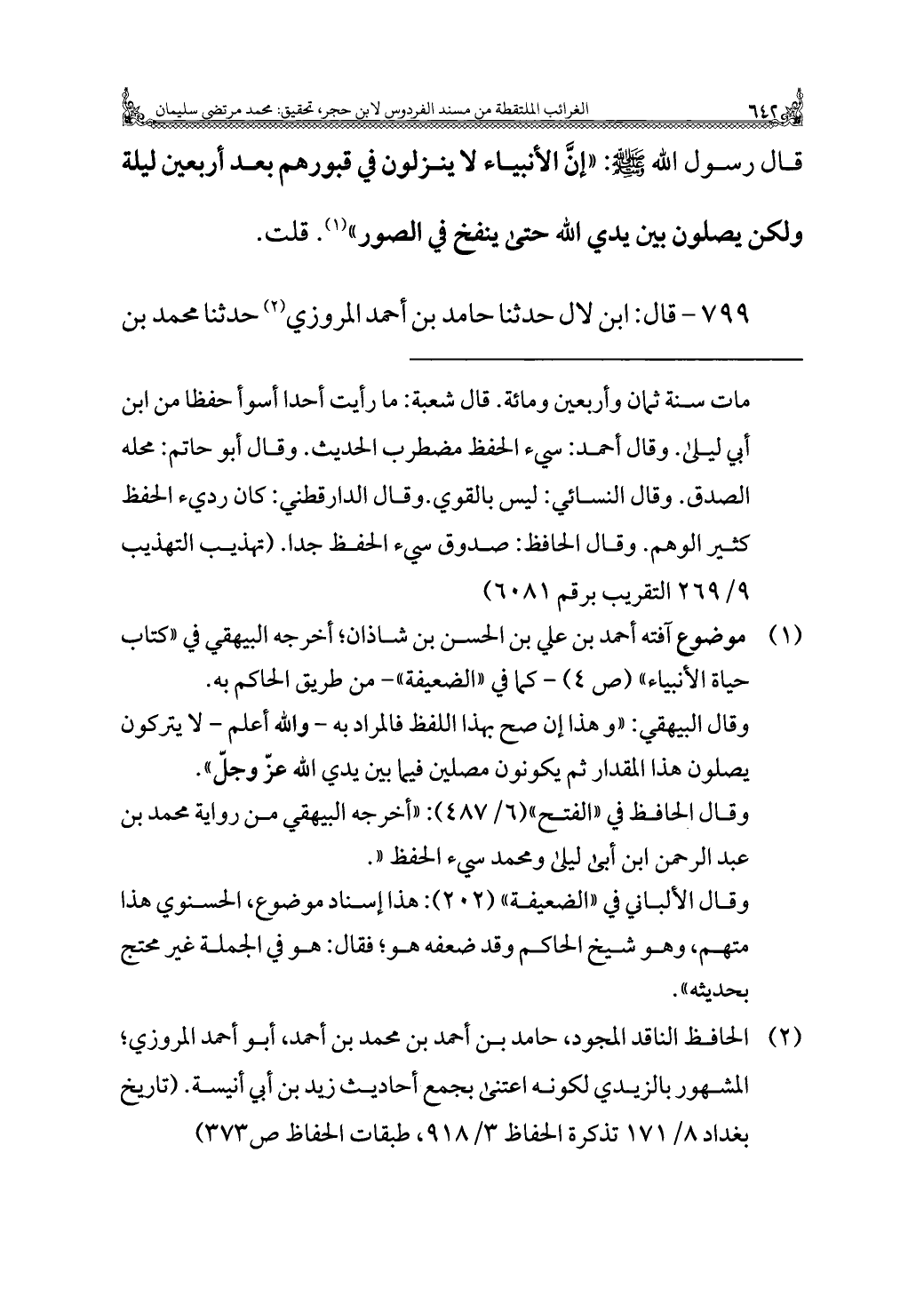 (¬٢) الحافظ الناقد المجود، حامد بن أحمد بن محمد بن أحمد، أبو أحمد المروزي؛ المشهور بالزيدي لكونه اعتنى بجمع أحاديث زيد بن أبي أنيسة. (تاريخ بغداد ٨/ ١٧١ تذكرة الحفاظ ٣/ ٩١٨، طبقات الحفاظ ص ٣٧٣) =