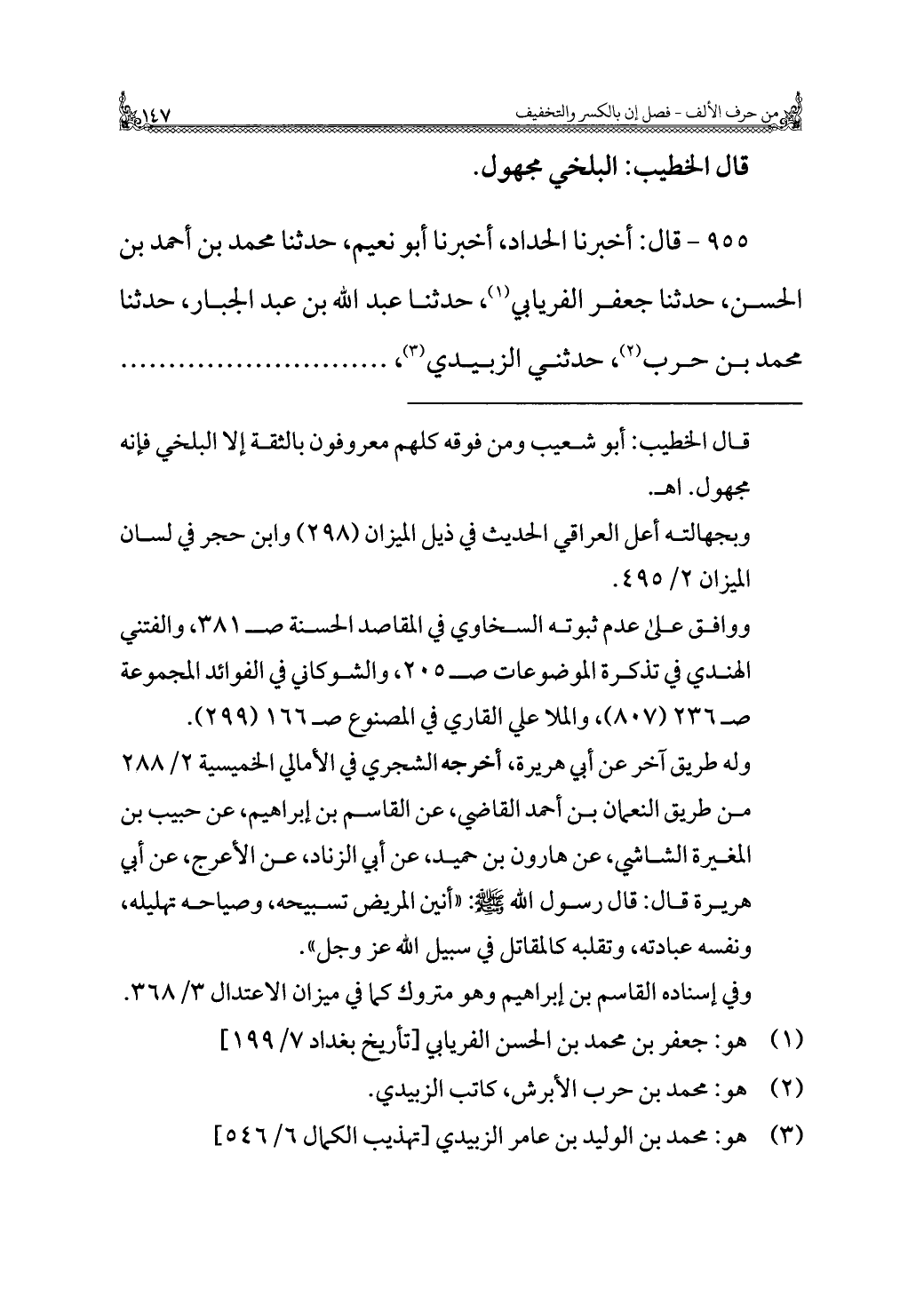 (¬١) هو: جعفر بن محمد بن الحسن الفريابي [تأريخ بغداد ٧/ ١٩٩]