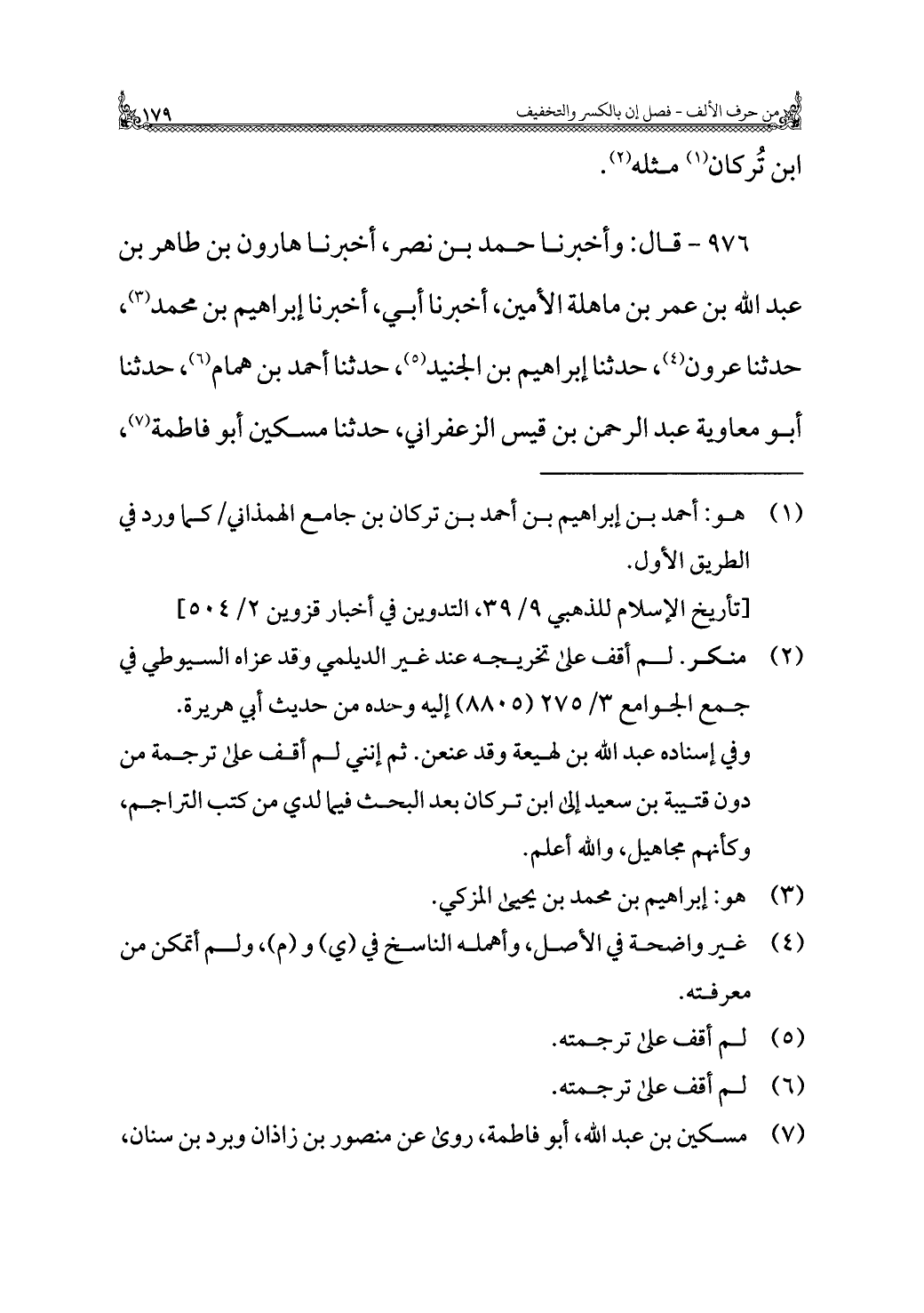 (¬١) هو: أحمد بن إبراهيم بن أحمد بن تركان بن جامع الهمذاني/ كما ورد في الطريق الأول.