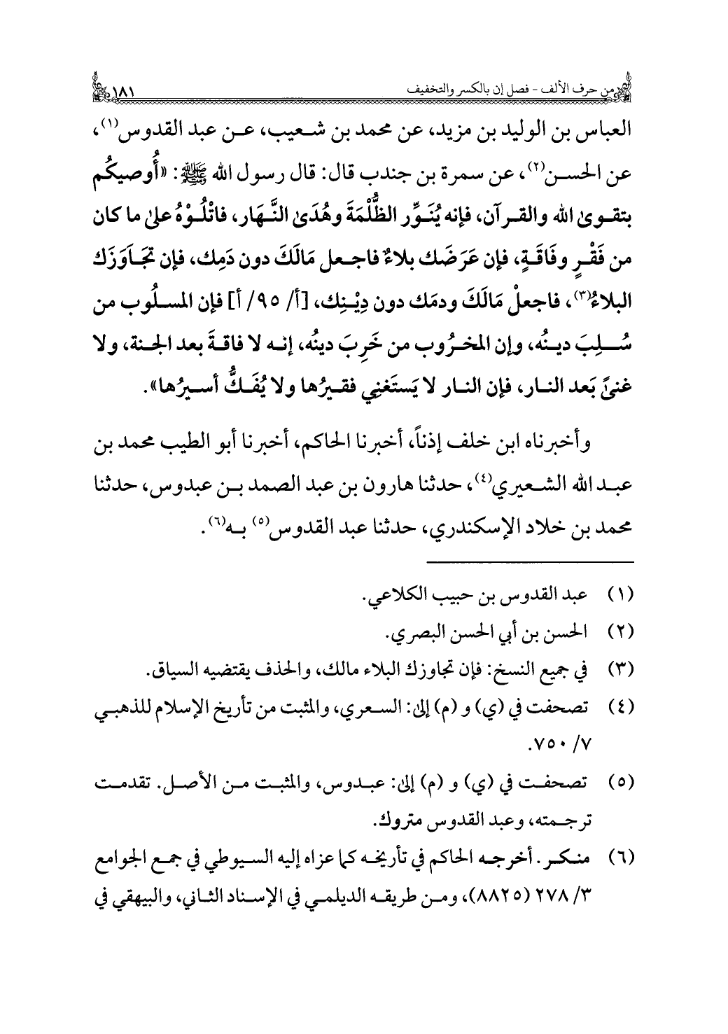 (¬٥) تصحفت في (ي) و (م) إلى: عبدوس، والمثبت من الأصل. تقدمت ترجمته، وعبد القدوس متروك.