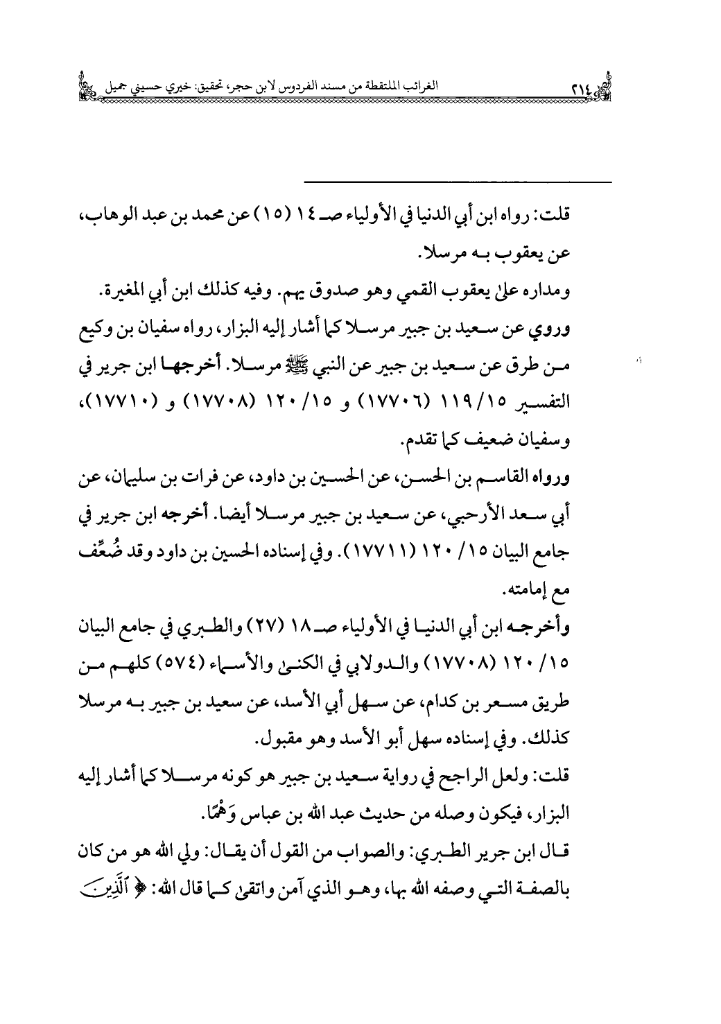 ورواه القاسم بن الحسن، عن الحسين بن داود، عن فرات بن سليمان، عن أبي سعد الأرحبي، عن سعيد بن جبير مرسلا أيضا. أخرجه ابن جرير في جامع البيان ١٥/ ١٢٠ (١٧٧١١). وفي إسناده الحسين بن داود وقد ضُعِّف مع إمامته.