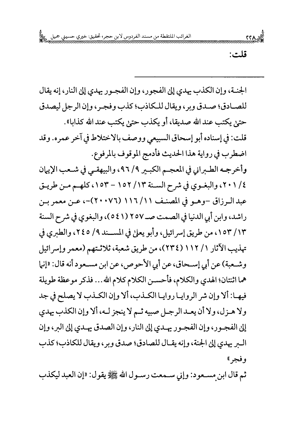 ثم قال ابن مسعود: وإني سمعت رسول الله - صلى الله عليه وسلم - يقول: "إن العبد ليكذب =