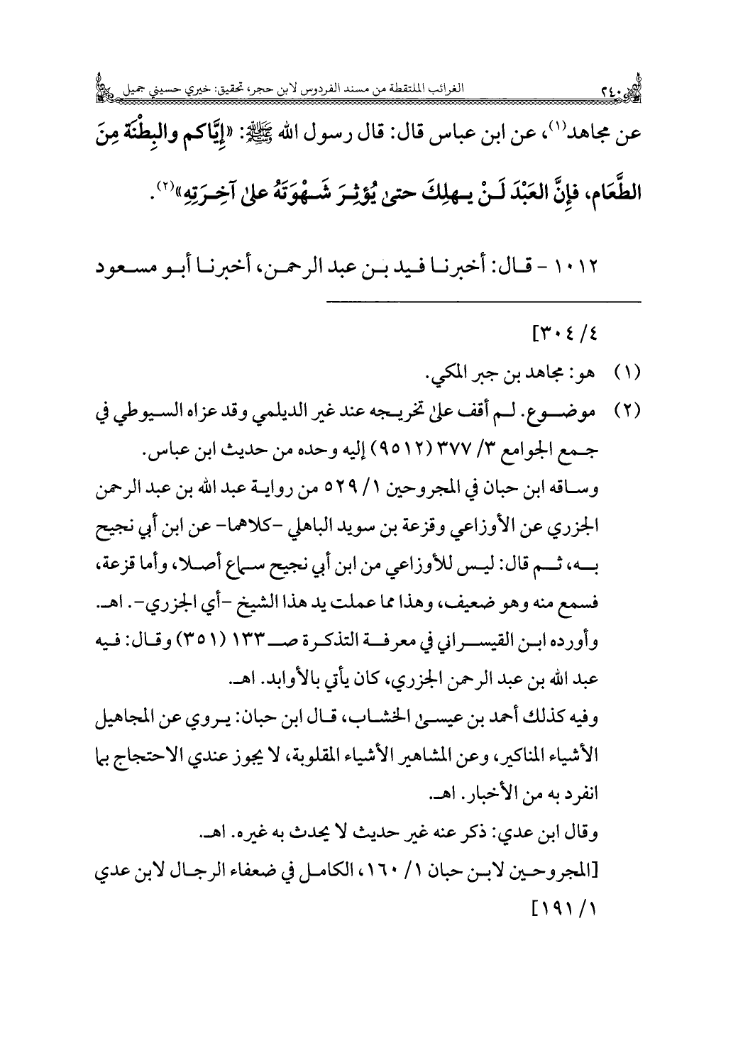 [المجروحين لابن حبان ١/ ١٦٠، الكامل في ضعفاء الرجال لابن عدي ١/ ١٩١]