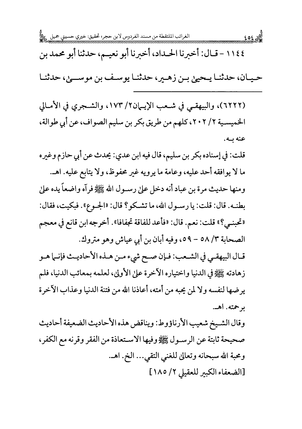 ١١٤٤ - قال: أخبرنا الحداد، أخبرنا أبو نعيم، حدثنا أبو محمد بن حيان، حدثنا يحيى بن زهير، حدثنا يوسف بن موسى، حدثنا