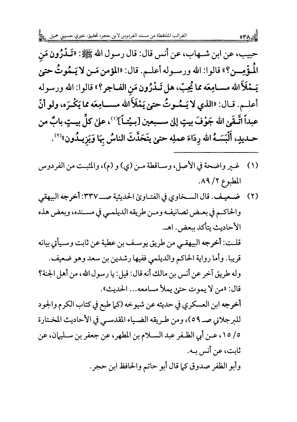 كتاب زهر الفردوس = الغرائب الملتقطة من مسند الفردوس (اسم الجزء: 3)