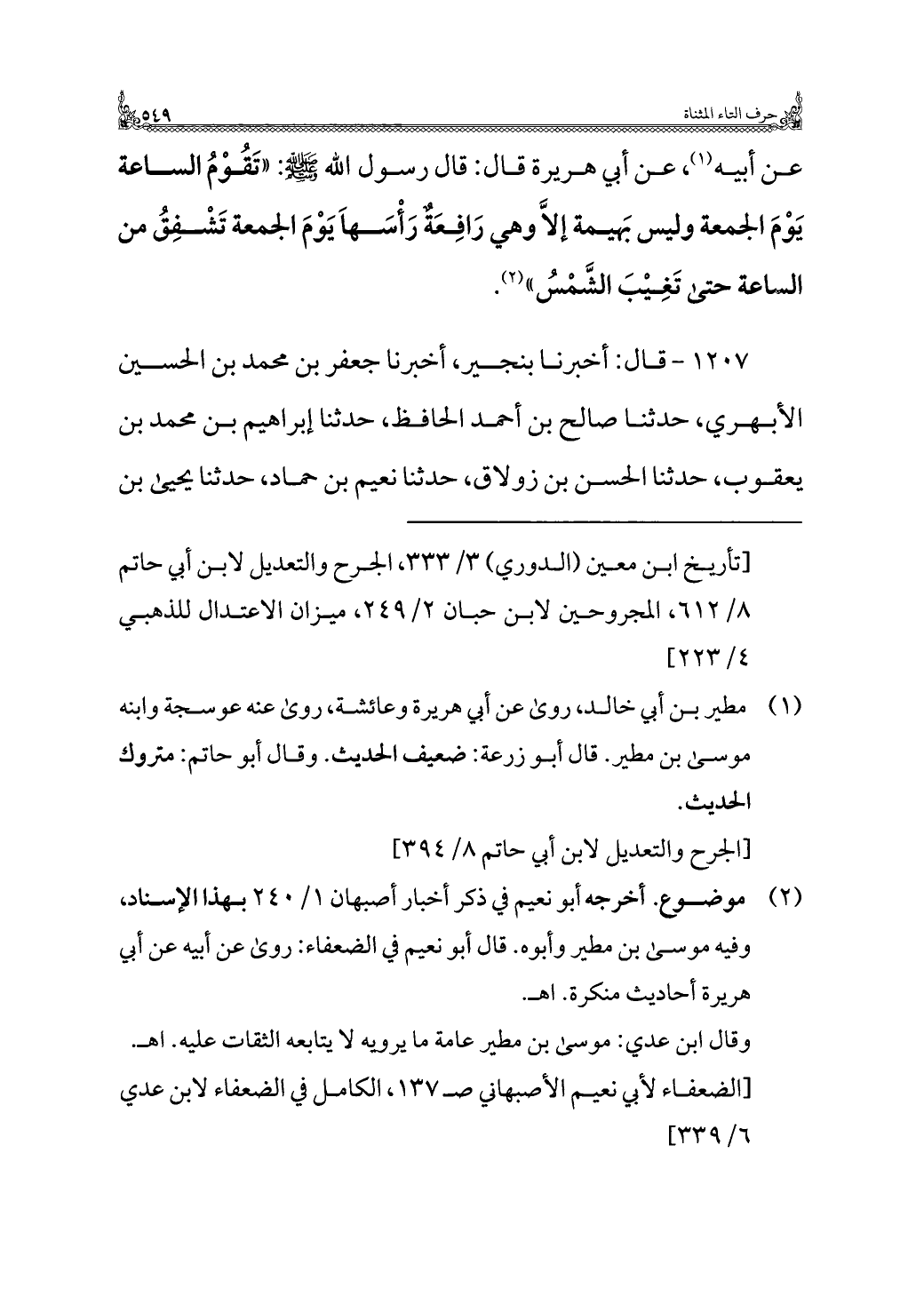 ١٢٠٧ - قال: أخبرنا بنجير، أخبرنا جعفر بن محمد بن الحسين الأبهري، حدثنا صالح بن أحمد الحافظ، حدثنا إبراهيم بن محمد بن يعقوب، حدثنا الحسن بن زولاق، حدثنا نعيم بن حماد، حدثنا يحيى بن