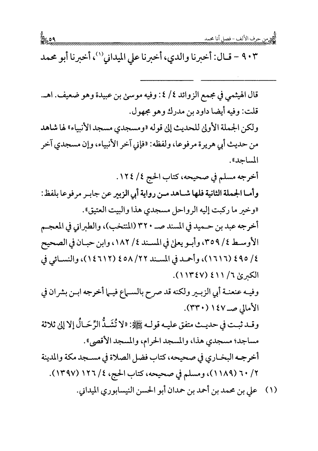 ٩٠٣ - قال: أخبرنا والدي، أخبرنا علي الميداني (¬١)، أخبرنا أبو محمد