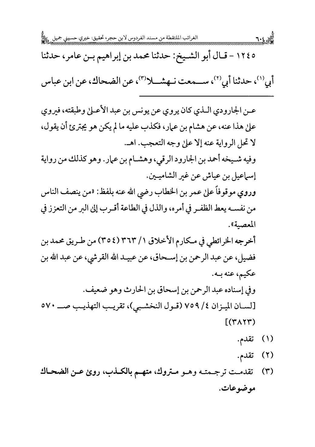 (¬٣) تقدمت ترجمته وهو متروك، متهم بالكذب، روى عن الضحاك موضوعات.