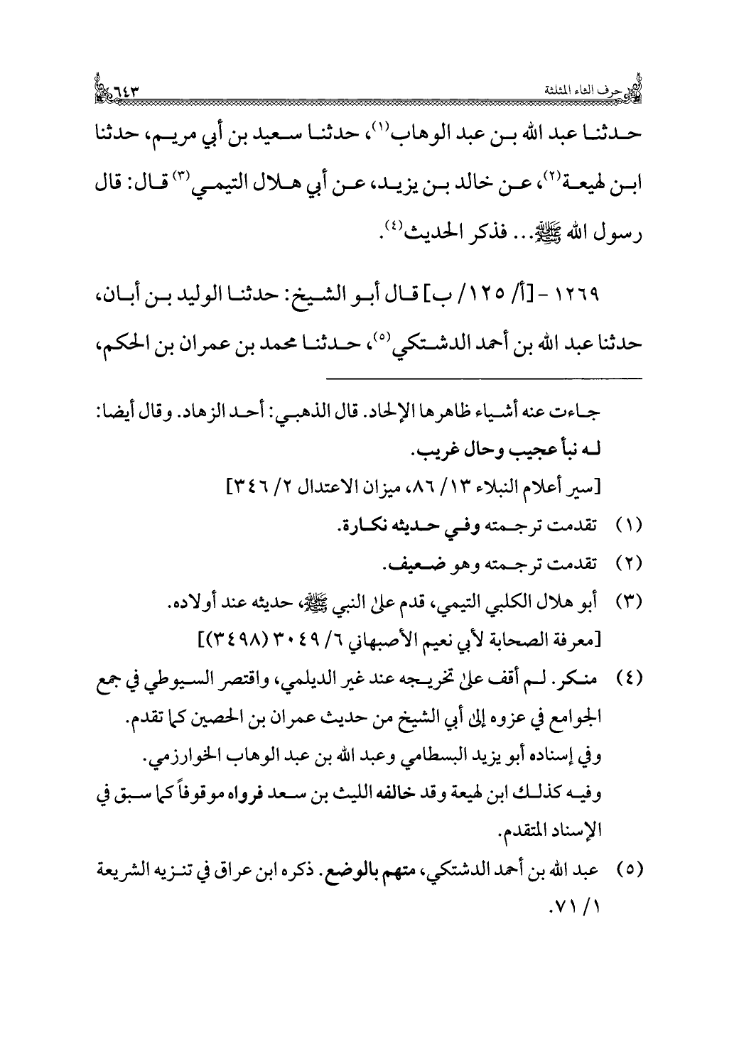 (¬٥) عبد الله بن أحمد الدشتكي، متهم بالوضع. ذكره ابن عراق في تنزيه الشريعة ١/ ٧١.