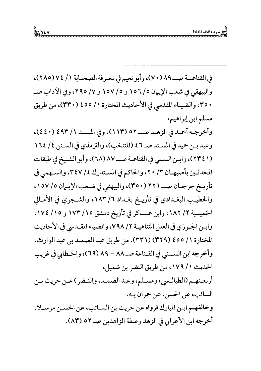 = في القناعة صـ ٨٩ (٧٠)، وأبو نعيم في معرفة الصحابة ١/ ٧٤ (٢٨٥)، والبيهقي في شعب الإيمان ٥/ ١٥٦ و ٥/ ١٥٧ و ٧/ ٢٩٥، وفي الآداب صـ ٣٥٠، والضياء المقدسي في الأحاديث المختارة ١/ ٤٥٥ (٣٣٠)، من طريق مسلم ابن إبراهيم،