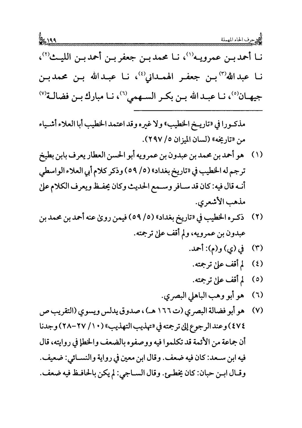 نا أحمد بن عمرويه (¬١)، نا محمد بن جعفر بن أحمد بن الليث (¬٢)، نا عبد الله (¬٣) بن جعفر الهمداني (¬٤)، نا عبد الله بن محمد بن جيهان (¬٥)، نا عبد الله بن بكر السهمي (¬٦)، نا مبارك بن فضالة (¬٧)