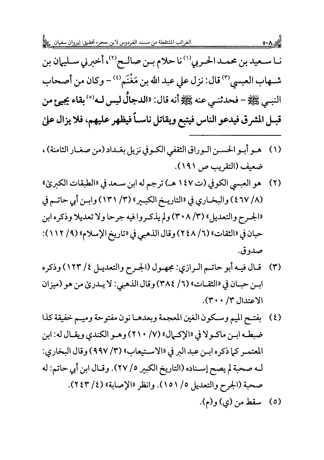 (¬٣) قال فيه أبو حاتم الرازي: مجهول (الجرح والتعديل ٤/ ١٢٣) وذكره ابن حبان في "الثقات" (٦/ ٣٨٤) وقال الذهبي: لا يدرى من هو (ميزان الاعتدال ٣/ ٣٠٠).