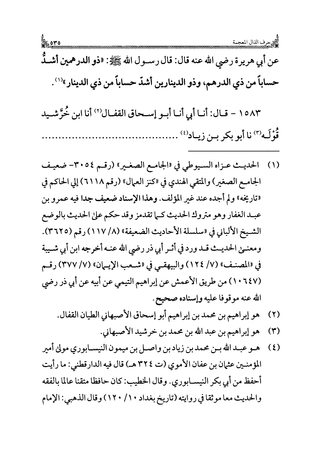 ١٥٨٣ - قال: أنا أبي أنا أبو إسحاق القفال (¬٢) أنا ابن خُرَّشيد قوْلَه (¬٣) نا أبو بكر بن زياد (¬٤). . . . . .