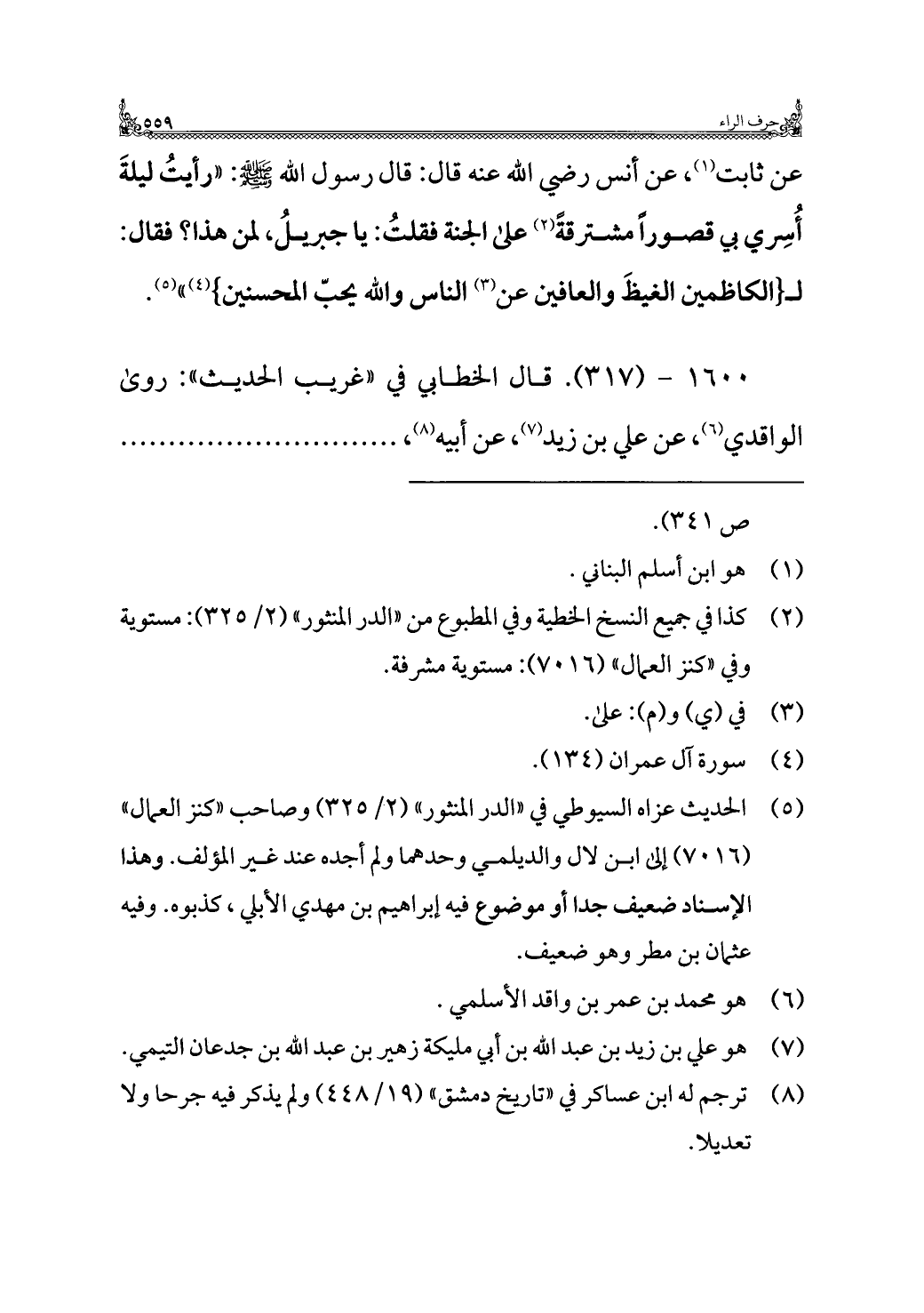 ١٦٠٠ - (٣١٧). قال الخطابي في "غريب الحديث": روى الواقدي (¬٦)، عن علي بن زيد (¬٧)، عن أبيه (¬٨)، . . . . . .