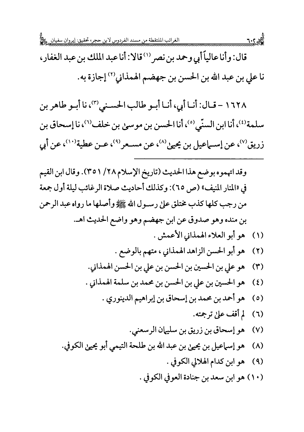 (¬٢) هو أبو الحسن الزاهد الهمذاني، متهم بالوضع.