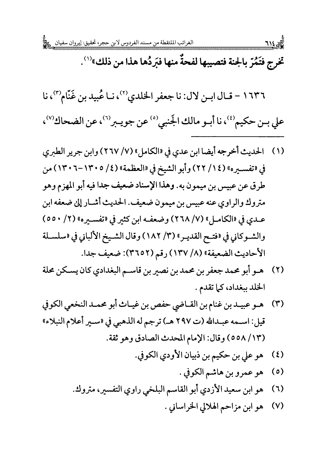 ١٦٣٦ - قال ابن لال: نا جعفر الخلدي (¬٢)، نا عُبيد بن غَنّام (¬٣)، نا علي بن حكيم (¬٤)، نا أبو مالك الجَنبي (¬٥) عن جويبر (¬٦)، عن الضحاك (¬٧)،