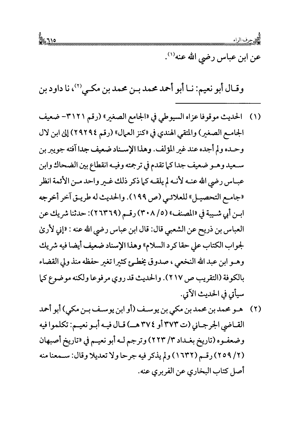 (¬٢) هو محمد بن محمد بن مكي بن يوسف (أو ابن يوسف بن مكي) أبو أحمد القاضي الجرجاني (ت ٣٧٣ أو ٣٧٤ هـ) قال فيه أبو نعيم: تكلموا فيه وضعفوه (تاريخ بغداد ٣/ ٢٢٣) وترجم له أبو نعيم في "تاريخ أصبهان (٢/ ٢٥٩) رقم (١٦٣٢) ولم يذكر فيه جرحًا ولا تعديلًا وقال: سمعنا منه أصل كتاب البخاري عن الفربري عنه.