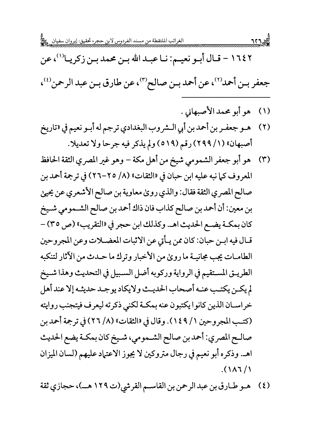 ١٦٤٢ - قال أبو نعيم: نا عبد الله بن محمد بن زكريا (¬١)، عن جعفر بن أحمد (¬٢)، عن أحمد بن صالح (¬٣)، عن طارق بن عبد الرحمن (¬٤)،