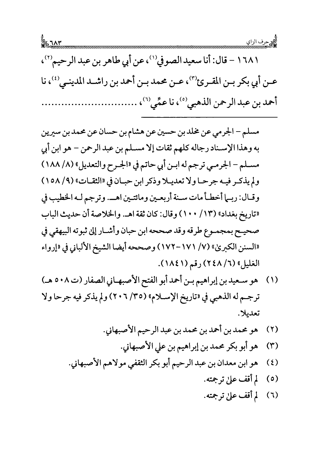 (¬١) هو سعيد بن إبراهيم بن أحمد أبو الفتح الأصبهاني الصفار (ت ٥٠٨ هـ) ترجم له الذهبي في "تاريخ الإسلام" (٣٥/ ٢٠٦) ولم يذكر فيه جرحًا ولا تعديلًا.