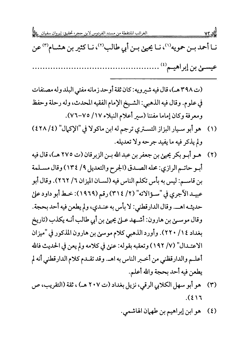 نا أحمد بن حمويه (¬١)، نا يحيى بن أبي طالب (¬٢)، نا كثير بن هشام (¬٣) عن عيسى بن إبراهيم (¬٤). . . . . . . . . . . . . . . . . . . . . . . . .