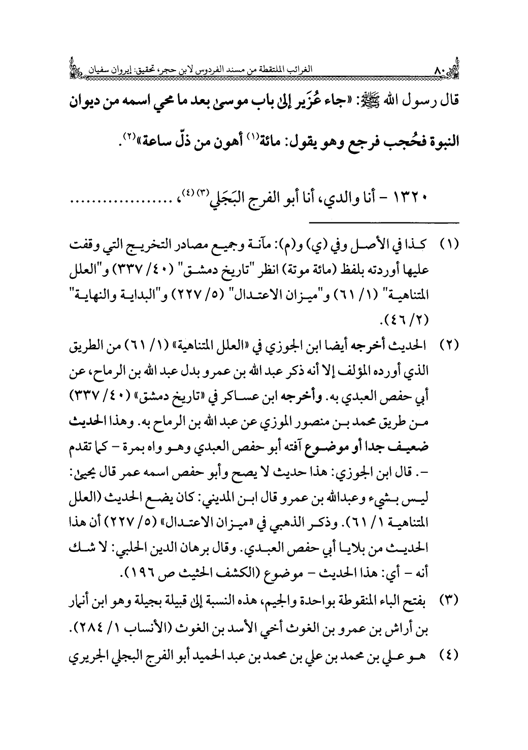 كتاب زهر الفردوس = الغرائب الملتقطة من مسند الفردوس (اسم الجزء: 4)
