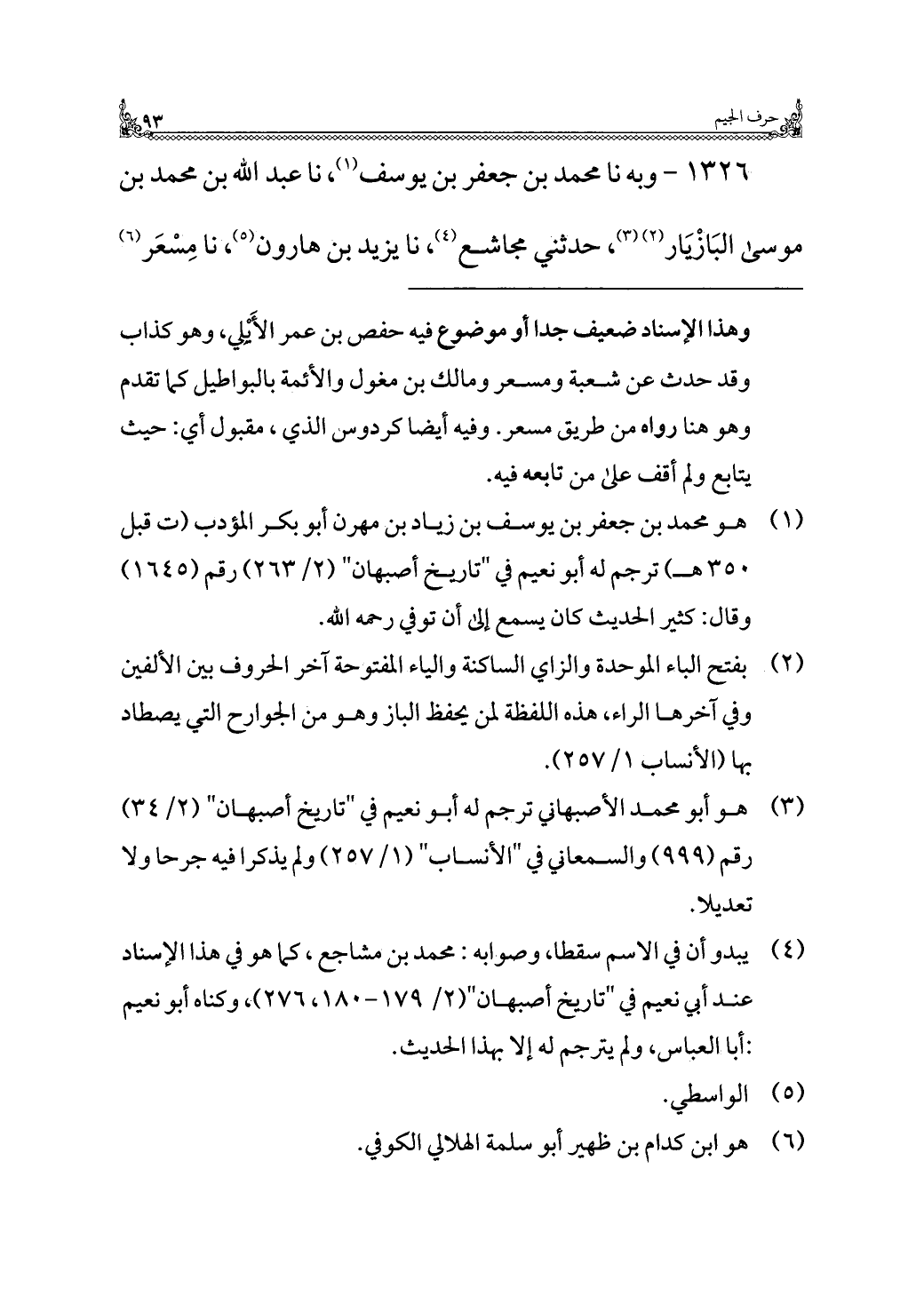 ١٣٢٦ - وبه نا محمد بن جعفر بن يوسف (¬١)، نا عبد الله بن محمد بن موسى البَازْيَار (¬٢) (¬٣)، حدثني مجاشع (¬٤)، نا يزيد بن هارون (¬٥)، نا مِسْعَر (¬٦)