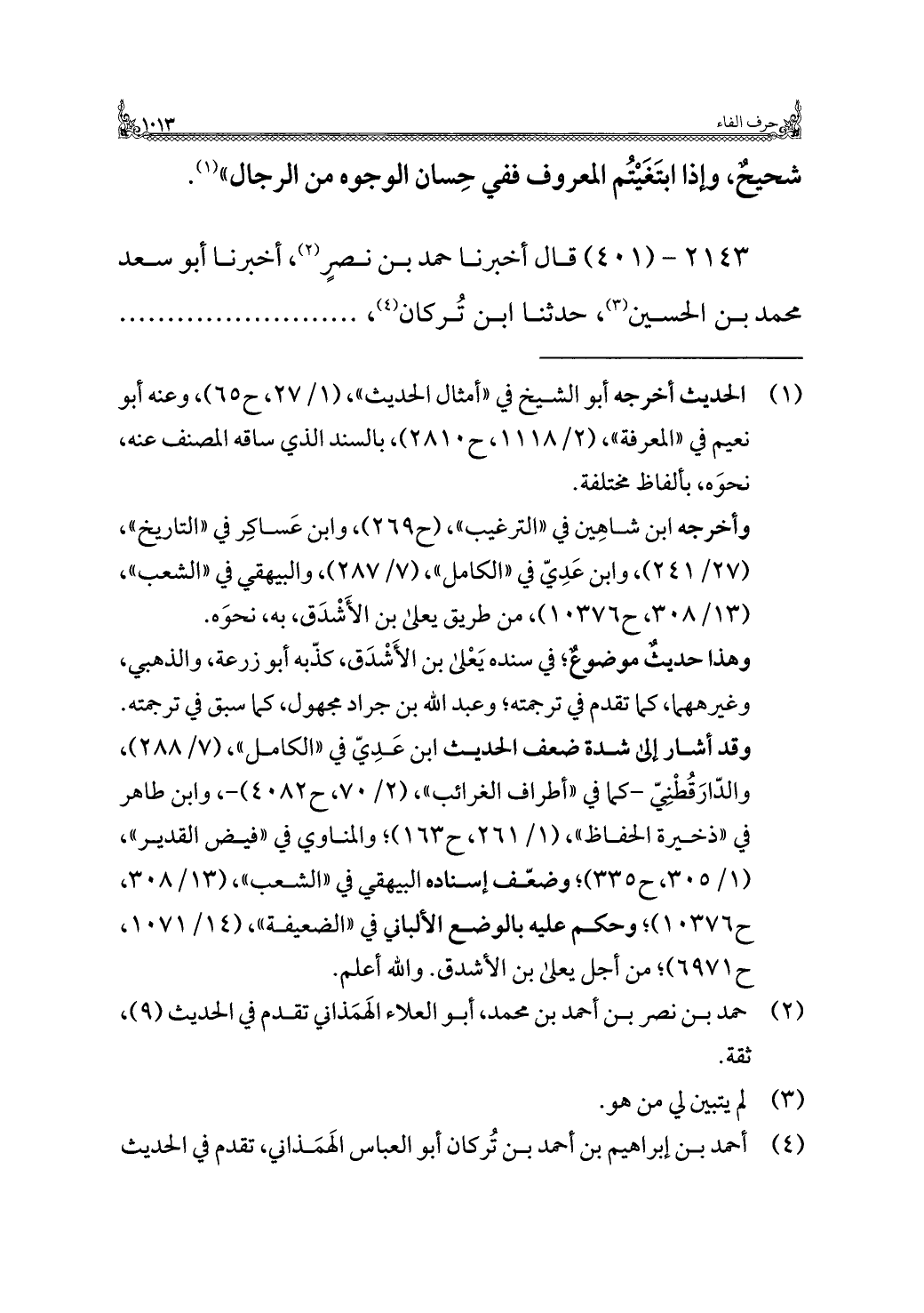 ٢١٤٣ - (٤٠١) قال أخبرنا حمد بن نصرِ (¬٢)، أخبرنا أبو سعد محمَّد بن الحسين (¬٣)، حدثنا ابن تُركان (¬٤)، . . . . . . . . . . . . . . . . . . . . . . . . .