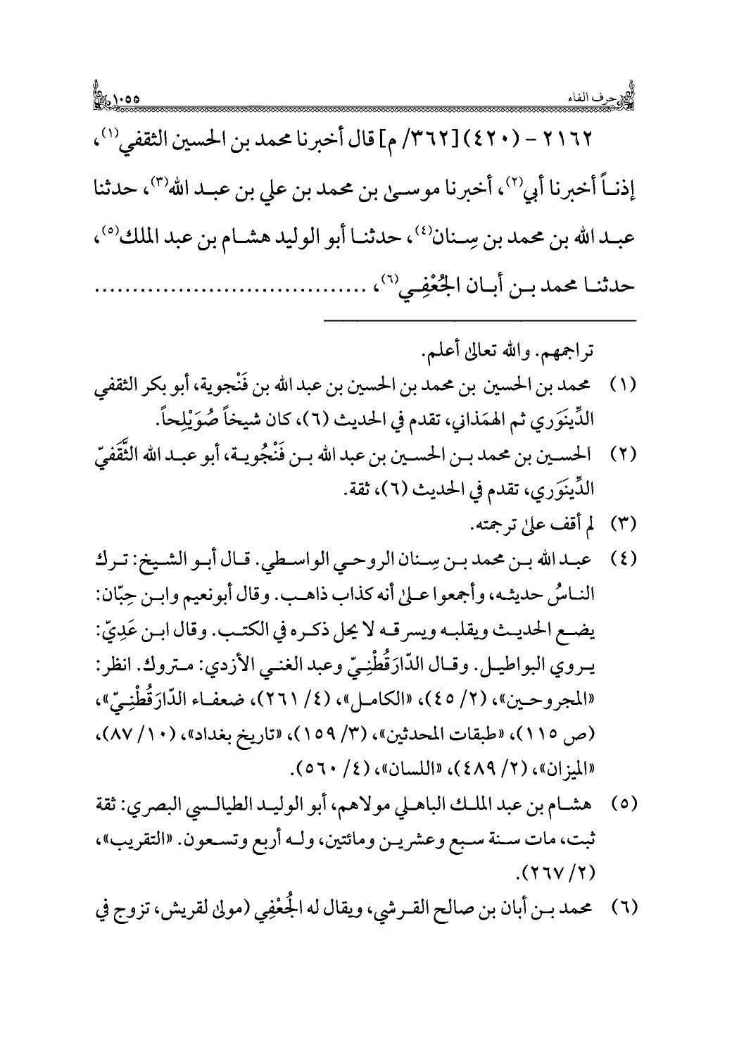 (¬١) محمد بن الحسين بن محمد بن الحسين بن عبد الله بن فَنْجوية، أبو بكر الثقفي الدِّينَوَري ثم الهمَذاني، تقدم في الحديث (٦)، كان شيخًا صُوَيْلِحًا.