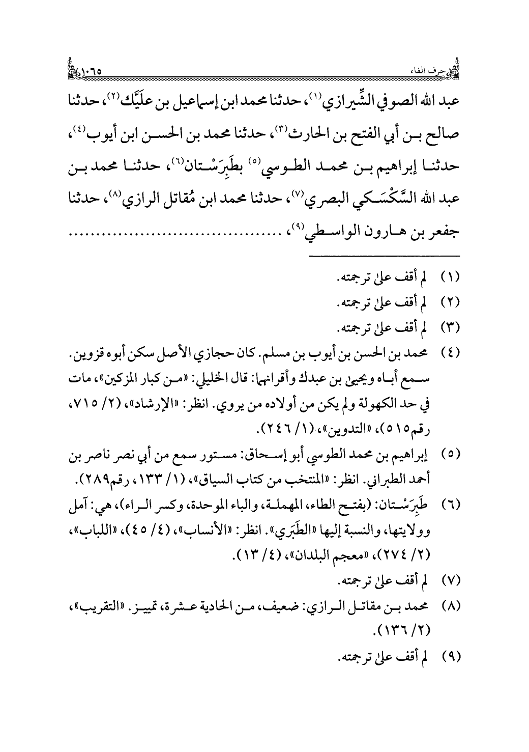 (¬٥) إبراهيم بن محمد الطُّوسي أبو إسحاق: مستور سمع من أبي نصر ناصر بن أحمد الطبراني. انظر: "المنتخب من كتاب السياق"، (١/ ١٣٣، رقم ٢٨٩).