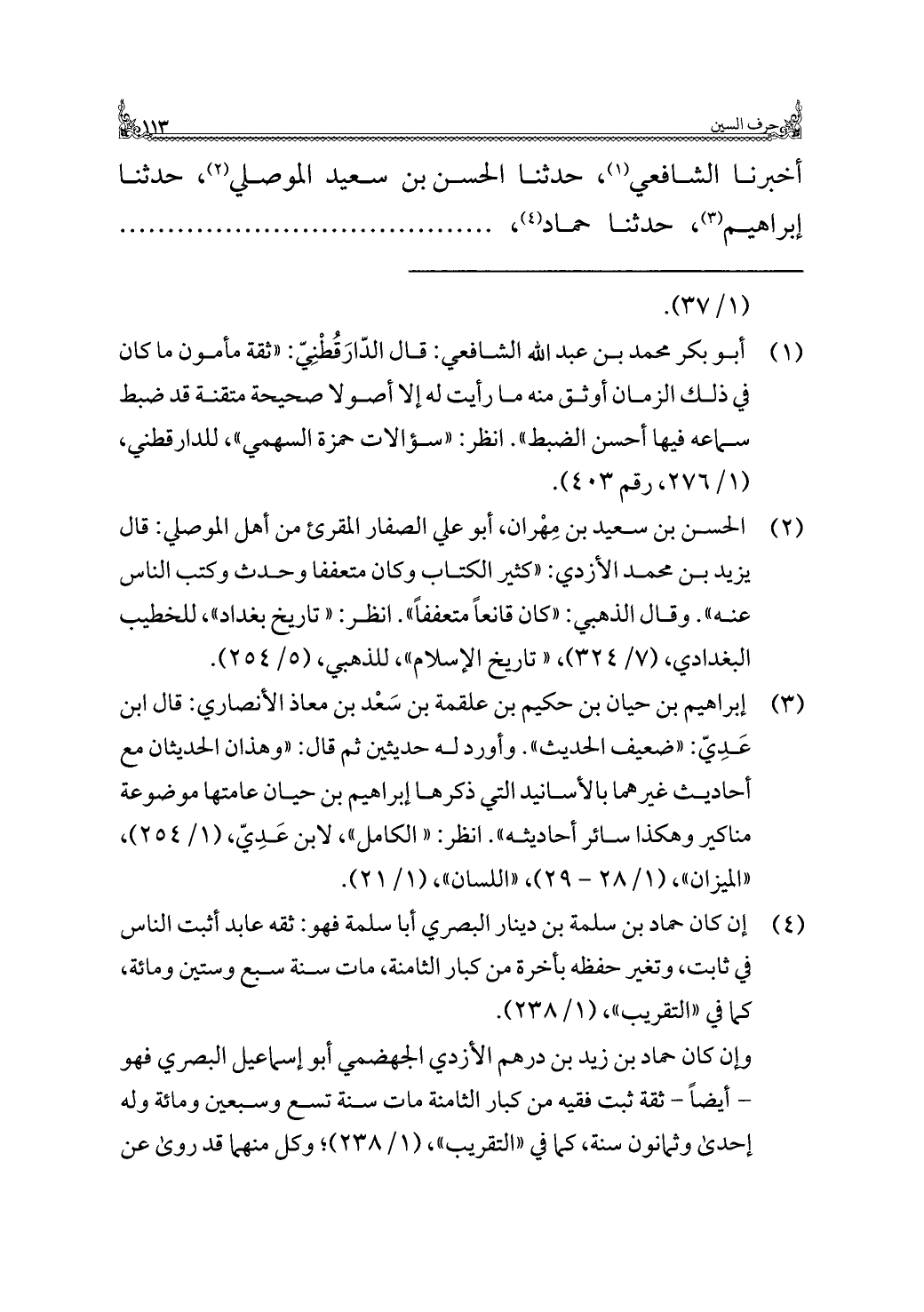 أخبرنا الشافعي (¬١)، حدثنا الحسن بن سعيد الموصلي (¬٢)، حدثنا إبراهيم (¬٣)، حدثنا حماد (¬٤)، . . . . . .