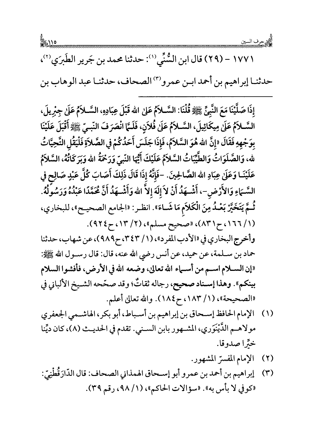 ١٧٧١ - (٢٩) قال ابن السُّنِّي (¬١): حدثنا محمد بن جَرير الطَبَري (¬٢)، حدثنا إبراهيم بن أحمد ابن عمرو (¬٣) الصحاف، حدثنا عبد الوهاب بن
