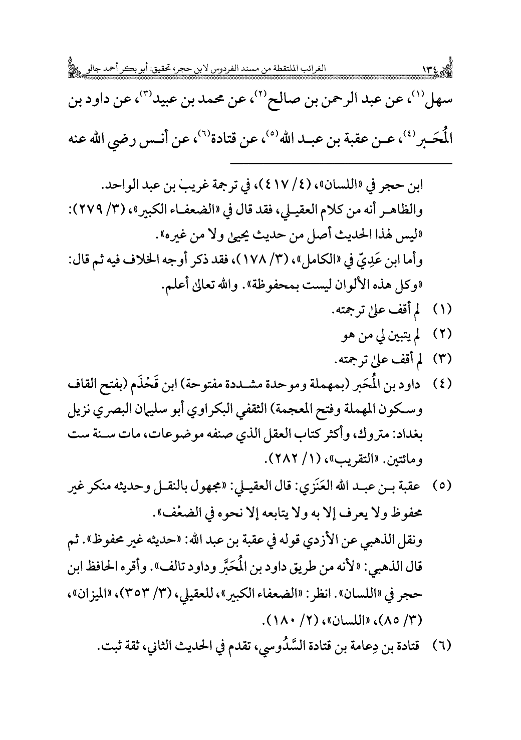 سهل (¬١)، عن عبد الرحمن بن صالح (¬٢)، عن محمد بن عبيد (¬٣)، عن داود بن المُحَبر (¬٤)، عن عُقبة بن عبد اللَّه (¬٥)، عن قتادة (¬٦)، عن أنس رضي اللَّه عنه