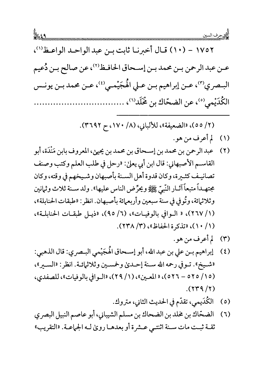 ١٧٥٢ - (١٠) قال أَخْبَرَنَا ثابت بن عبد الواحد الواعظ (¬١)، عن عبد الرحمن بن محمد بن إسحاق الحافظ (¬٢)، عن صالح بن دُعيم البصري (¬٣)، عن إبراهيم بن علي الهُجَيْمي (¬٤)، عن محمد بن يونس الكُدَيْمي (¬٥)، عن الضحّاك بن مخلَد (¬٦)، . . . . . .