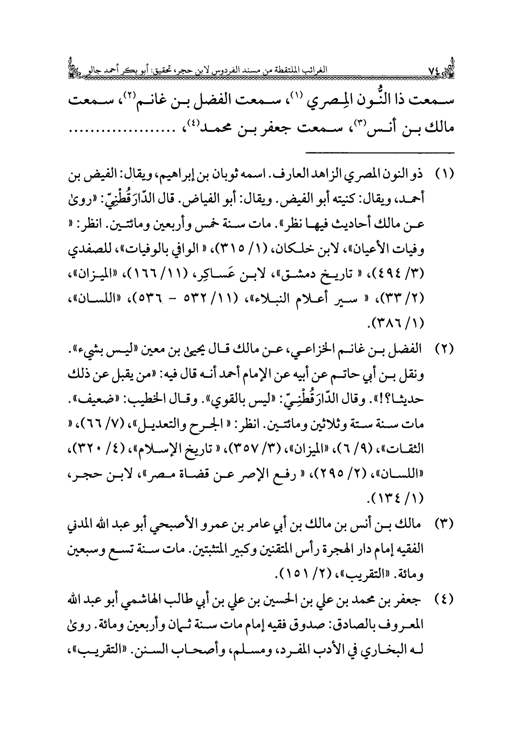 سمعت ذا النُّون المِصري (¬١)، سمعت الفضل بن غانم (¬٢)، سمعت مالك بن أنس (¬٣)، سمعت جعفر بن محمد (¬٤)، . . . . . .