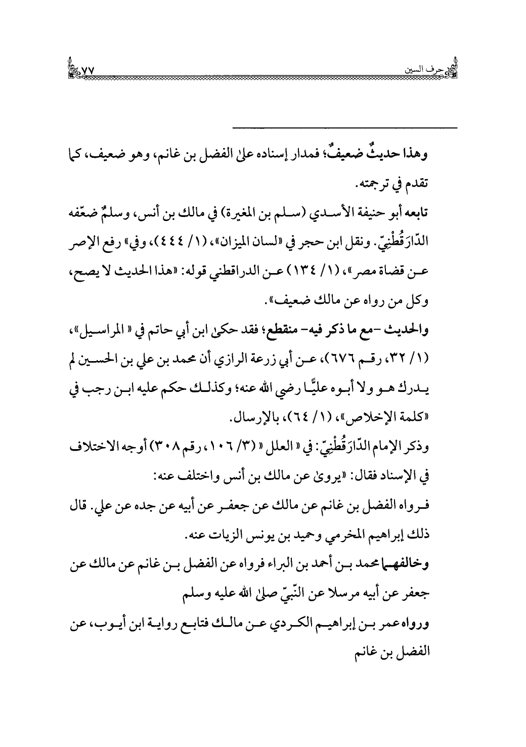 وخالفهما محمد بن أحمد بن البراء فرواه عن الفضل بن غانم عن مالك عن جعفر عن أبيه مرسلًا عن النّبيّ صلى اللَّه عليه وسلم.