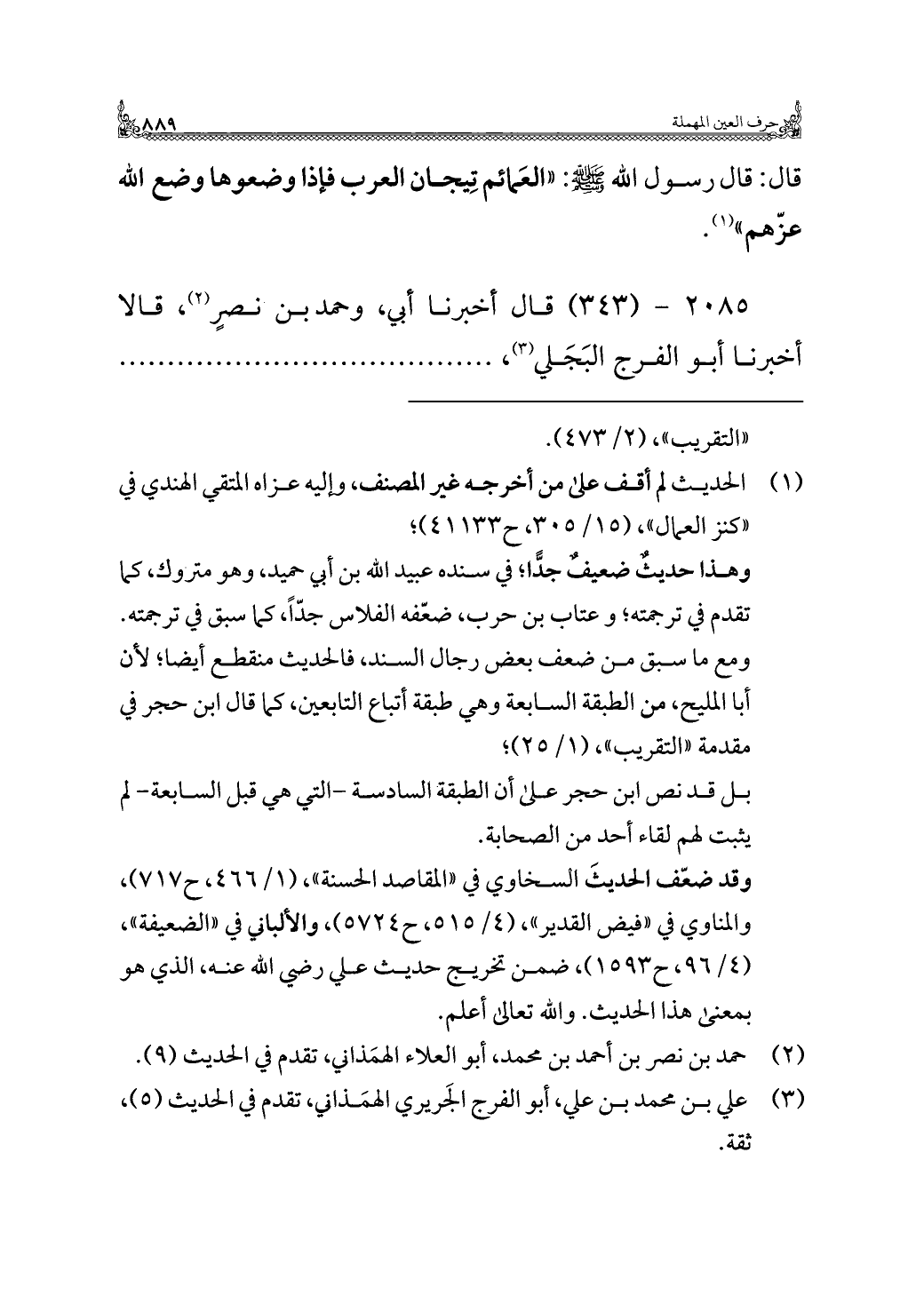 ٢٠٨٥ - (٣٤٣) قال أخبرنا أبي، وحمد بن نصرٍ (¬٢)، قالا أخبرنا أبو الفرج البَجَلي (¬٣)، . . . . . . . .