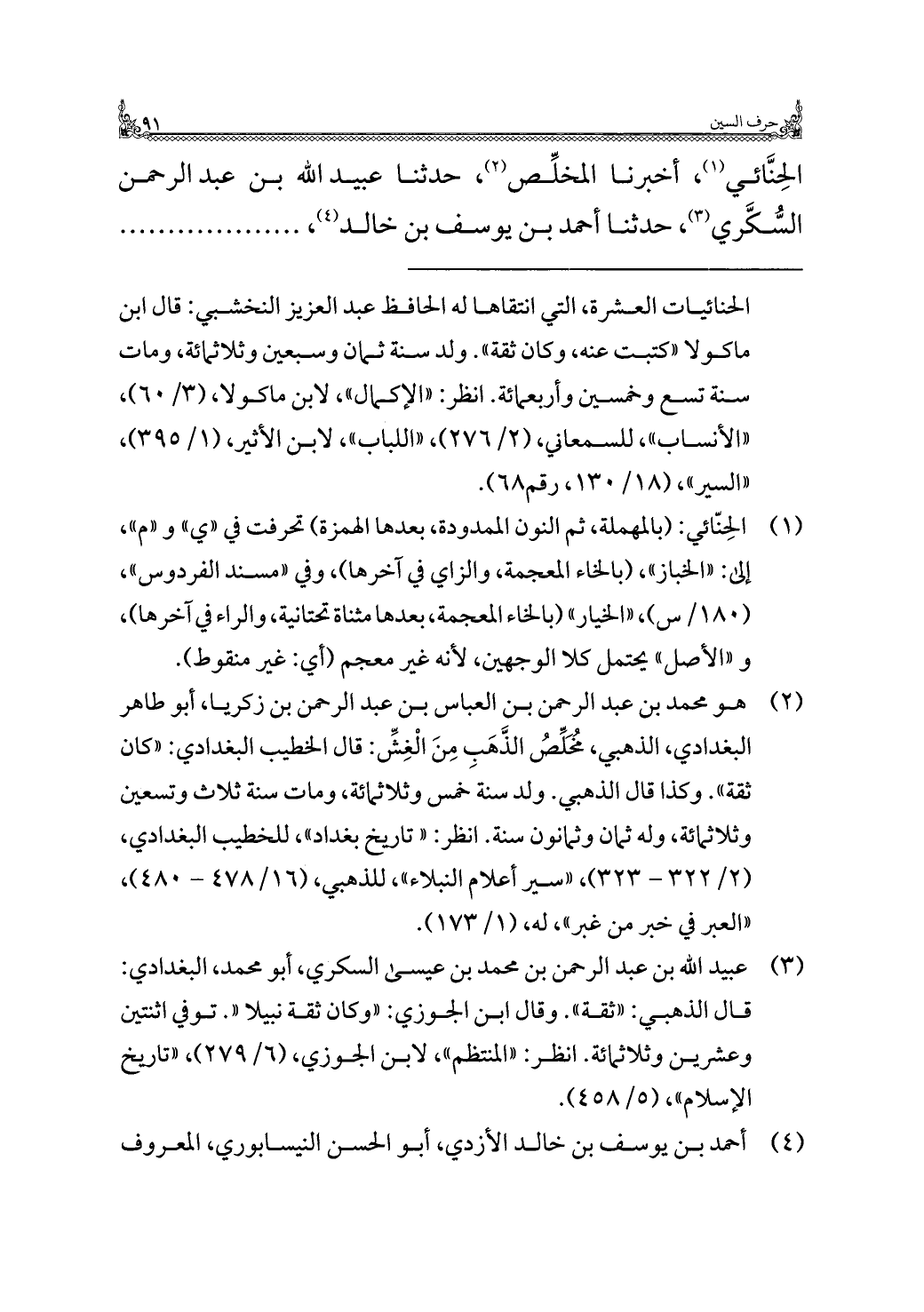 الحِنَّائي (¬١)، أخبرنا المخلِّص (¬٢)، حدثنا عبيد اللَّه بن عبد الرحمن السُّكَّري (¬٣)، حدثنا أحمد بن يوسف بن خالد (¬٤)، . . . . . . .