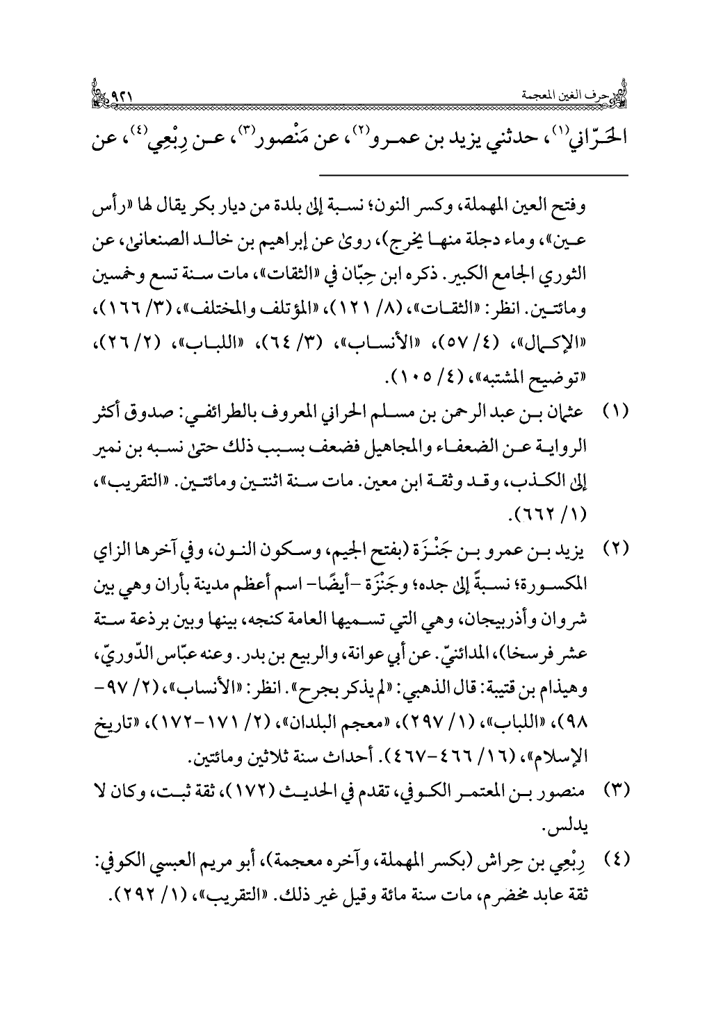 الحرّاني (¬١)، حدّثني يزيد بن عمرو (¬٢)، عن مَنْصور (¬٣)، عن رِبْعِي (¬٤)، عن
