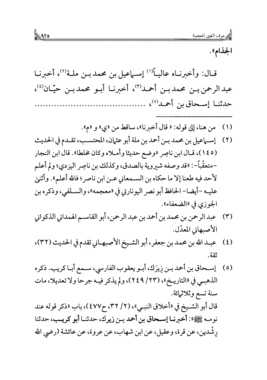 قال: وأخبرناه عاليًا (¬١) إسماعيل بن محمد بن ملة (¬٢)، أَخْبَرَنَا عبد الرَّحمن بن محمد بن أحمد (¬٣)، أَخْبَرَنَا أبو محمد بن حيّان (¬٤)، حدثنا إسحاق بن أحمد (¬٥)، ........................................