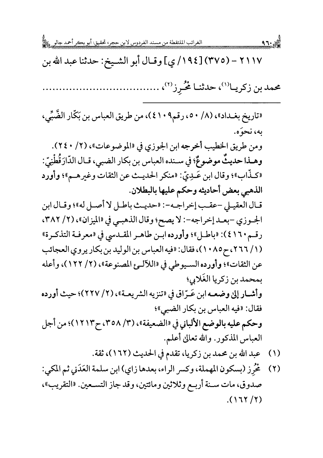 كتاب زهر الفردوس = الغرائب الملتقطة من مسند الفردوس (اسم الجزء: 5)