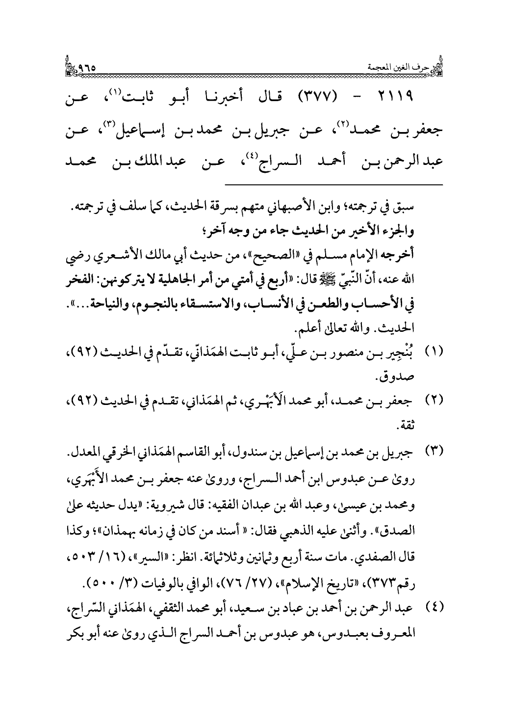 (¬٤) عبد الرحمن بن أحمد بن عباد بن سعيد، أبو محمد الثقفي، الهمَذاني السّراج، المعروف بعبدوس، هو عبدوس بن أحمد السراج الذي روى عنه أبو بكر
