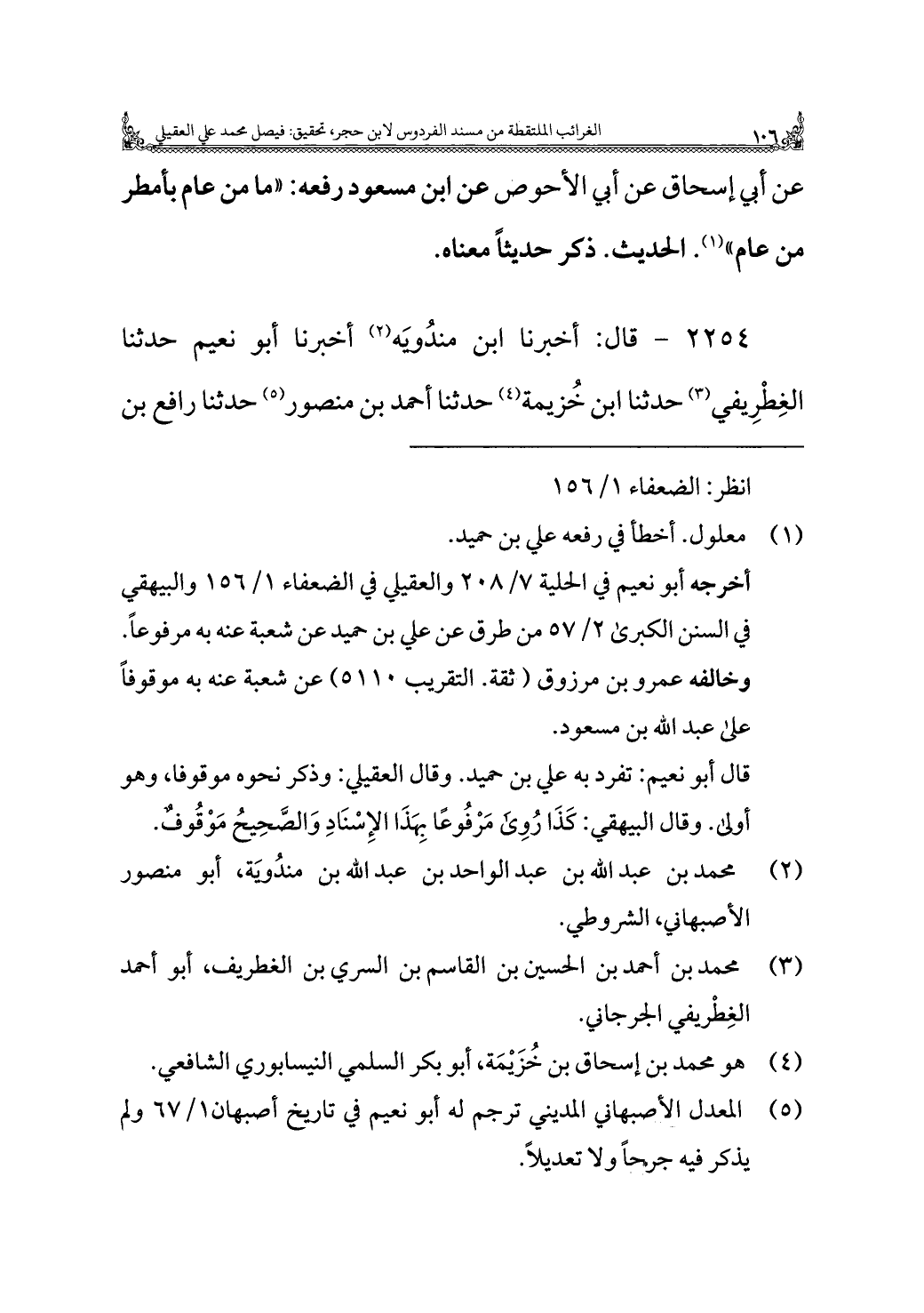 ٢٢٥٤ - قال: أَخْبَرَنَا ابن مندُويَه (¬٢) أَخْبَرَنَا أبو نعيم حدثنا الغِطْرِيفي (¬٣) حدثنا ابن خُزيمة (¬٤) حدثنا أحمد بن منصور (¬٥) حدثنا رافع بن