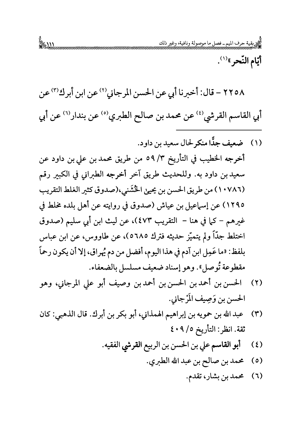 ٢٢٥٨ - قال: أخبرنا أبي عن الحسن المرجاني (¬٢) عن ابن أبرك (¬٣) عن أبي القاسم القرشي (¬٤) عن محمد بن صالح الطبري (¬٥) عن بندار (¬٦) عن أبي